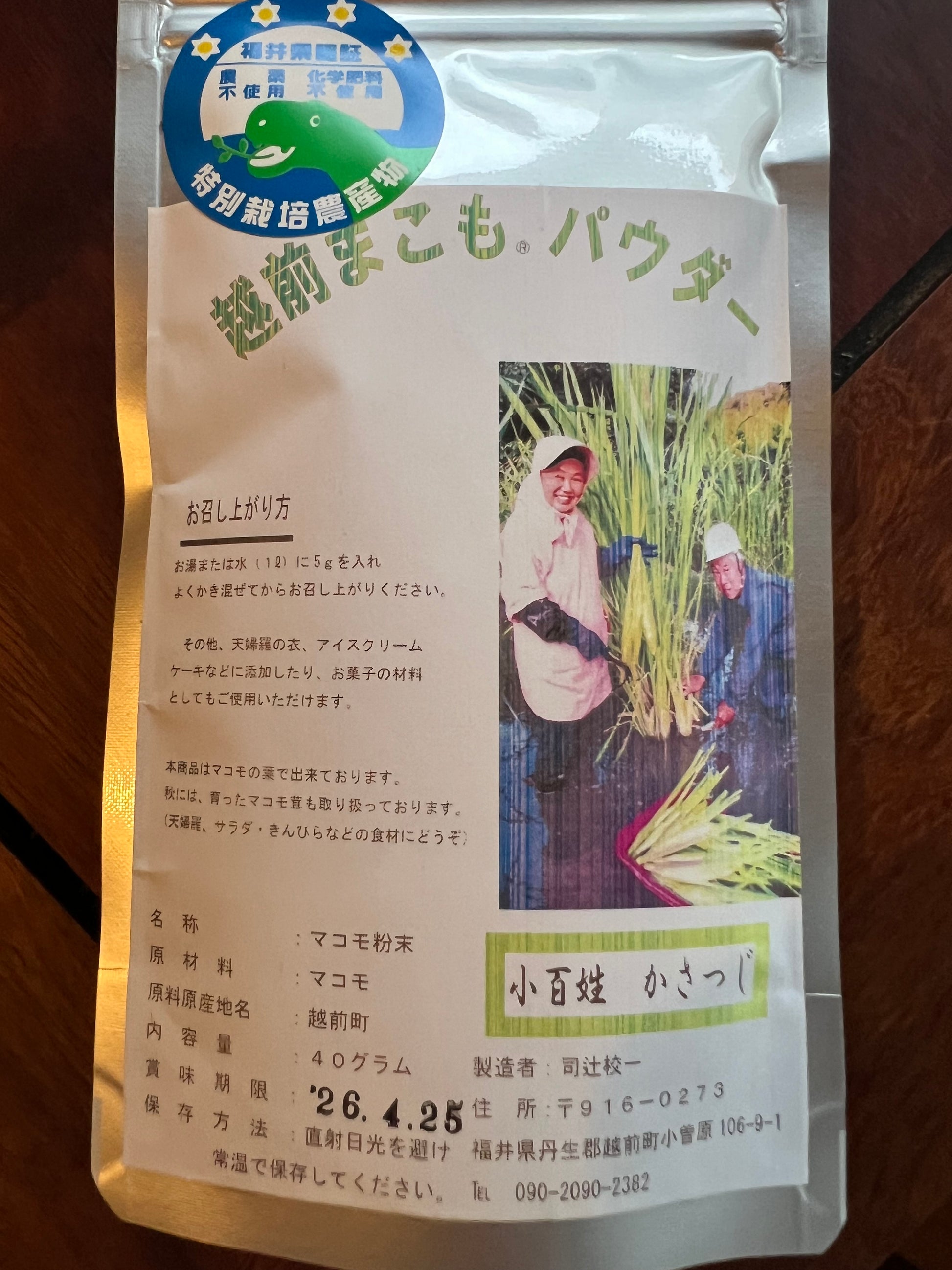 福井県認証 農薬不使用 化学肥料不使用 特別栽培農産物越前まこもパウダー
